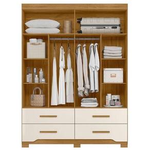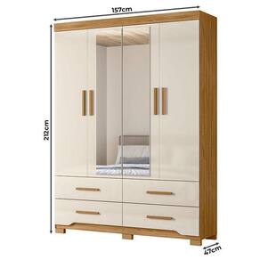 Guarda Roupa Solteiro Ambiente Miami 4 Portas Freijó Off White com Espelho - Moval