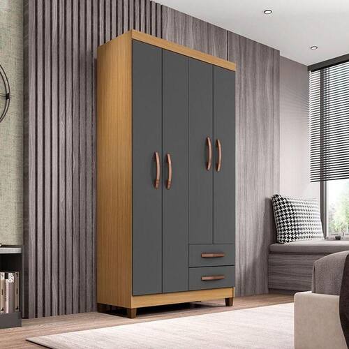 Guarda Roupa Solteiro Ambiente Mogi 4 Portas Carvalho Americano Grafite - Incorplac