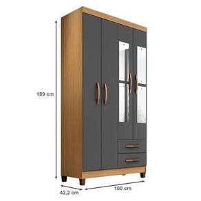 Guarda Roupa Solteiro Ambiente Mogi com Espelho 4 Portas Carvalho Americano Grafite - Incorplac