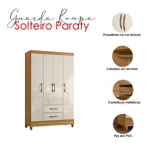Guarda Roupa Solteiro Ambiente Paraty 4 Portas Freijó Off White - Moval