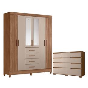 Guarda Roupa Solteiro Aruba com espelho e Cômoda Georgia Carvalho Fendi – Moval