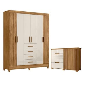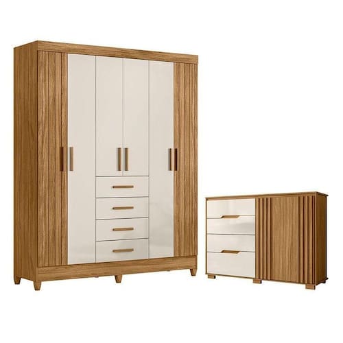 Organize seu quarto com elegância e o melhor custo benefício do mercado. Apresentamos o Guarda Roupa Solteiro Aruba e Cômoda Texas fabricados pela Moval. Guarda Roupa com 06 portas, 04 gavetas com corrediças metálicas, puxadores em MDF, cabideiro e calceiros em alumínio para melhor organização interna, portas com detalhes frisados, espaço ideal para roupas longas e pés em PVC. A cômoda possui 04 gavetas com corrediças telescópicas, dobradiças 35mm com amortecedor, portas com detalhes ripados, puxadores usinados e pés em PVC. Fabricado com materiais de alta qualidade que garante resistência e durabilidade ao produto. Confira mais detalhes e aproveite!