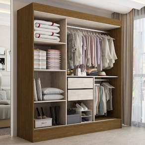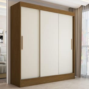 O(a) Guarda-Roupa Solteiro Atlanta 3 Portas de Correr 2 Gavetas Cinamomo/Off White - Loja é produzido em MDP na escala de brilho Semi-Brilho, e possui um grau de dificuldade de montagem: Médio.