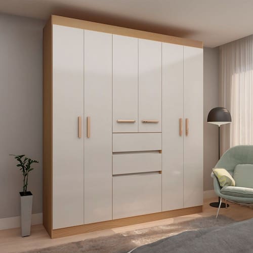 - Acompanha: Guarda-Roupa + Kit Ferragem + Manual de Montagem