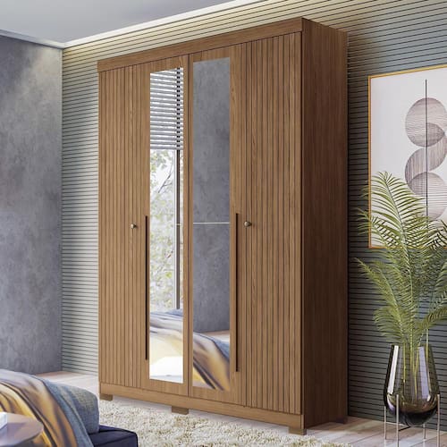 Guarda Roupa Solteiro Buriti Ripado 4 Portas com Espelho e Pés - Santos Andirá