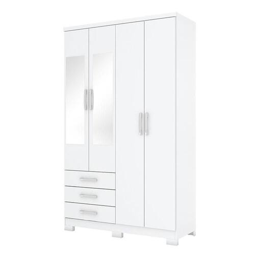 Guarda Roupa Solteiro Caju 4 Portas Branco com Espelho - Henn