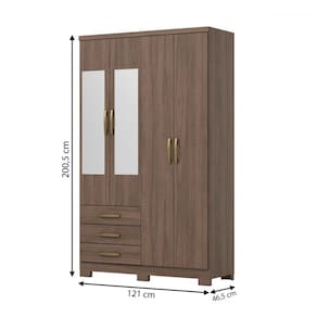 O(a) Guarda-Roupa Solteiro Caju 4 Portas e 3 Gavetas com Espelho Castanho - Henn é produzido em MDP na escala de brilho Brilho e Fosco, e possui um grau de dificuldade de montagem: Médio.