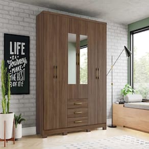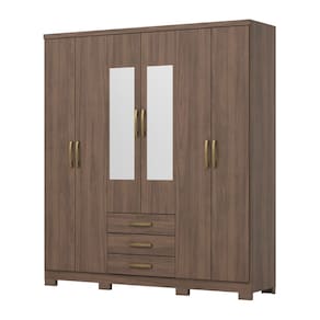 O(a) Guarda-Roupa Solteiro Caju 6 Portas 3 Gavetas com Espelho Castanho - Henn é produzido em MDP na escala de brilho Brilho e Fosco, e possui um grau de dificuldade de montagem: Médio.