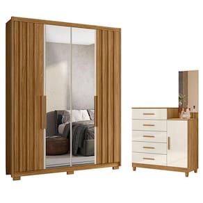 Guarda Roupa Solteiro Califórnia e Cômoda Lisboa Freijó Off White com Espelho - Moval