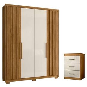 Está montando seu quarto? Apresentamos para você este belo conjunto composto pelo guarda roupa da linha Califórnia e a cômoda da linha Vitória. O guarda roupa conta com quatro portas, sendo duas com detalhes ripados em MDF. Oferecendo duas opções na hora de montagem das portas, permitindo se adaptar ao seu gosto. Internamente conta com três gavetas equipadas com corrediças telescópicas. Os puxadores em MDF e os pés em PVC completam o design. A cômoda possui três gavetas com corrediças metálicas. Seus puxadores na cor bronze dá um charme especial. Fabricados pela Moval, são desenvolvidos em MDP, unindo estilo, praticidade e qualidade. Sendo perfeito para quem está buscando sofisticação e funcionalidade para seu dia a dia. Aproveite e garanta já o seu!