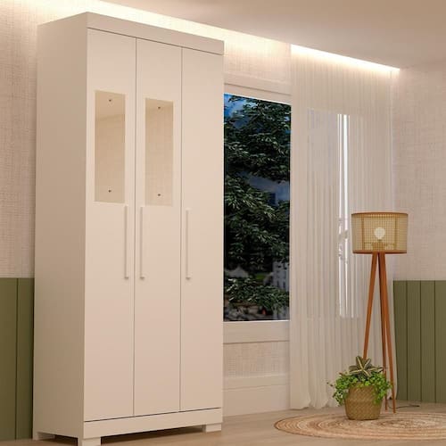 Guarda-Roupa Solteiro Canadá Com Espelho 3 Portas Linhamobília