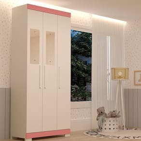 Materiais da estrutura: MDF | Cor: Bege Médio | Tipo de produto: Guarda-roupa | Garantia: 03 meses | Tipo de Garantia: Garantia do Fabricante | Modelo: Canadá | Marca: Linhamobília | Acabamento: Pintura UV (Ultravioleta) | Possui Portas: Sim | Quantidade de Portas: 03 | Possui Gavetas: Sim | Quantidade de Gavetas: 02 | Possui Prateleiras: Sim | Quantidade de Prateleiras: 4 prateleiras internas | Tipo de Corrediças: Telescópicas | Possui Puxadores: Sim | Possui Cabideiro: Sim | Material dos Cabideiros: Alumínio | Necessita de Montagem: Sim | Sistema de montagem: Convencional (Parafusos, minifix e cavilhas) | Peso Suportado por Prateleira: 5 Kg | Peso Suportado por Gaveta: 5 Kg | Peso Suportado: 45 Kg (distribuídos de forma adequada no mesmo) | Altura: 188 cm | Largura: 82,6 cm | Profundidade: 39,7 cm | Peso: 51,3 Kg | Tamanho do Móvel: Solteiro | Possui Espelho: Sim Cor: Bran/rosa/azul/lilas