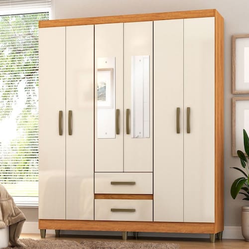 O(a) Guarda-Roupa Solteiro Celesti 6 Portas 2 Gavetas com Espelho Cinamomo/Off White - Pnr Móveis é produzido em MDP na escala de brilho Brilho, e possui um grau de dificuldade de montagem: Médio.