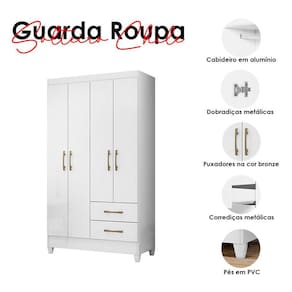Guarda Roupa Solteiro Chile 4 Portas Branco Brilho - Moval