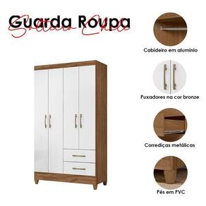 Guarda Roupa Solteiro Chile 4 Portas Branco - Moval