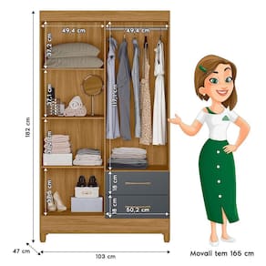 Guarda Roupa Solteiro Chile 4 Portas e 2 Gavetas - Moval