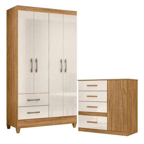 Organize seu quarto com elegância e o melhor custo benefício do mercado. Apresentamos o Guarda Roupa Solteiro Chile e Cômoda Vênus fabricados pela Moval. Guarda Roupa com 04 portas e 02 gavetas com corrediças metálicas, puxadores na cor bronze, cabideiro em madeira para melhor organização interna, espaço ideal para roupas longas e pés em PVC. A cômoda possui 04 gavetas com corrediças metálicas, 01 porta com detalhe frisado, puxadores em MDF na cor bronze e um design moderno que combina com qualquer decoração. Fabricado com materiais de alta qualidade que garante resistência e durabilidade ao produto. Confira mais detalhes e aproveite!