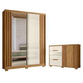 Guarda Roupa Solteiro Colorado 2 Portas Freijó Off White com Espelho - Moval