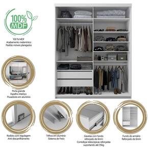 que tal o guarda-roupa altdorf? com visual elegante, o guarda-roupa altdorf encherá seu dormitório de sofisticação. enquanto as 2 portas e 2 gavetas disponibilizam excelente espaço para receber os itens de um casal ou de alguém com muitos pertences, o design clean agrega charme e leveza à decoração. feito em materiais resistentes e duráveis, o móvel tem portas de correr e espelho de corpo inteiro - ah, as portas contam com sistema anti descarrilhamento. perfeito, né? com ele, nunca mais você verá aquela bagunça de roupas pela casa :) Marca: Modern