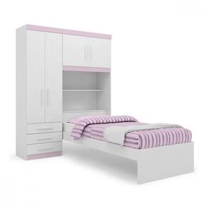 Caracteristicas: - Possui 3 opcoes de montagem (cores: rosa, azul e branco) - Estrutura em MDP de 12, 15 e 25 mm - Pintura UV - Puxador topazio em MDF - Cabideiro de Aluminio - Corredica metalica - Dobradica metalica de pressao - A cama pode ser montada do lado direito ou esquerdo - Suporte de peso das gavetas: 5 kg - Suporte de peso das prateleiras: 5 kg - Suporte de peso cama ate 70 kg - Garantia de 3 meses ________________________________________________________
