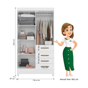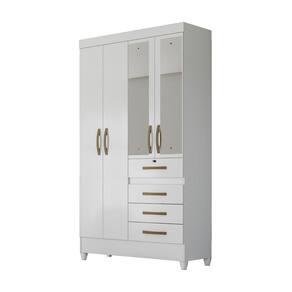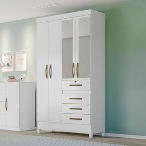 O Guarda-Roupa Sobral é a escolha perfeita para quem busca um móvel compacto, mas com boa capacidade de armazenamento. Com 4 portas e 2 espelhos, 4 gavetas, sendo a superior com chave para segurança dos pertences, 4 nichos, puxadores na cor bronze e pés em PVC, o Guarda-Roupa Sobral veio para otimizar a organização do seu ambiente. Fabricado 100% em MDP e cabideiros em alumínio, garante durabilidade e resistência. Suas corrediças metálicas proporcionam um funcionamento suave das gavetas. Com essas características, o Guarda-Roupa Sobral combina funcionalidade e estilo, tornando-se uma solução prática para qualquer quarto.