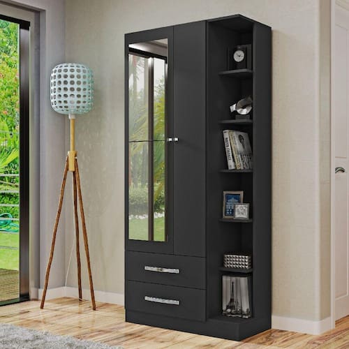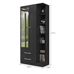 O guarda roupa Moju é moderno, prático e funcional! Se adapta a qualquer ambiente, seja ele o seu quarto, cozinha ou área de serviço. Ideal para guardar roupas, calçados, produtos de limpeza e higiene, é muito bem dividido, possui 4 prateleiras internas e mais 6 externas. Na parte inferior conta com 2 gavetas, com corrediças metálica. Este móvel é produzido 100% em MDP e acompanha kit de espelhos. Vai te encantar e deixar seu ambiente ainda mais bonito! Acabamento da Prateleira: Impressão Escala de Brilho da Prateleira: Fosco Possui Cabideiros: Não Acabamento da Gaveta: Impressão Escala de Brilho da Gaveta: Fosco Material do Puxador da Gaveta: ABS Possui Organizador de Gaveta: Não Acabamento da Porta: Impressão Escala de Brilho da Porta: Fosco Altura do Espelho: 50 cm Ambiente Principal: Quarto Complexidade da Montagem: Média: pode ser montado por mais de uma pessoa e/ou necessite de maior conhecimento para montagem Cor: Preto Cor do Produto: Preto Escala de Brilho: Fosco Espessura do Espelho: 3 mm Fita Integrada: Sim Formato do Espelho: Retangular Gaveta com Chave: Não Itens Inclusos: 1 Guarda Roupa, Kit Ferragens e Manual de Montagem Largura do Espelho: 30 cm Linha ou Coleção: Moju Manual de Montagem e Instalação: https://cdn2.madeiramadeira.com.br/atributo/mapi-moveis/442780-manual-multi-uso-2002.pdf Material da Gaveta: MDP Material da Porta: MDP Material da Prateleira: MDP Material Principal: MDP Necessita Montagem: Sim Origem do Produto: Nacional Peso: 48,3 kg Peso Máximo por Gaveta: 5 kg Possui Calceiros: Não Possui Espelho: Sim Possui Pés: Não Possui Portas: 02 Possui Prateleiras: 10 Quantidade de Espelho: 02 Espelhos com Tamanhos Iguais Recomendações de Uso, Manutenção e Limpeza: Limpeza com pano umedecido. Não aplicar lustra móveis. Sistema de Montagem: Parafusos, Cavilhas e Buchas Cilíndricas Tipo de Corrediça da Gaveta: Metálica Simples Tipo de Dobradiça/Corrediça da Porta: Metálica Tipo de Fixação do Espelho: Fita Dupla Face Tipo de Gaveta: Externa Tipo de Guarda-Roupa: Solteiro Tipo de Puxador da Gaveta: Externo Tipo de Puxador da Porta: Externo