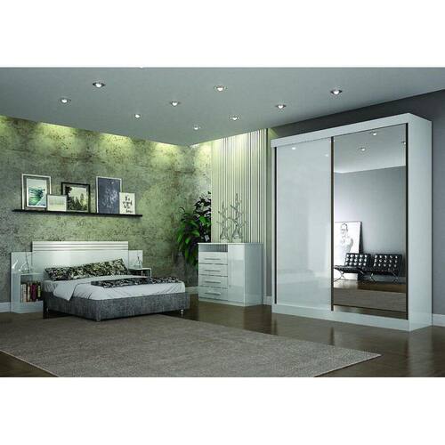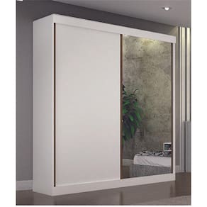Guarda Roupa Solteiro com Espelho 2 Portas 3 Gavetas - São Paulo-Branco - Leifer Móveis