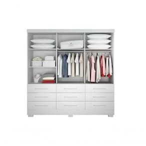 Guarda Roupa Solteiro com Espelho 3 Portas 9 Gavetas - Buriti-Branco - Móveis Novo Horizonte
