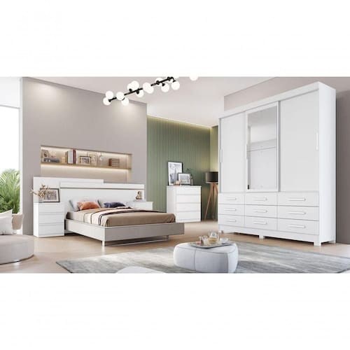 Guarda Roupa Solteiro com Espelho 3 Portas 9 Gavetas - Capri-Branco - Móveis Novo Horizonte