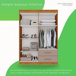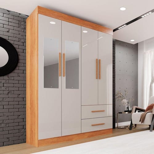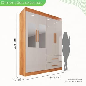 Este lindo Guarda Roupa Verona Premium com Espelho Sallêto é um produto de excelente qualidade, funcionalidade e beleza, ele é a melhor opção para deixar seu dormitório muito mais arrumado e convidativo. Com corrediças telescópicas que permitem uma abertura total das gavetas, parte interna clean toda branca possibilitando maior clareza, divisões internas amplas que oferecem praticidade e organização, 2 gavetas espaçosas para guardar tudo que precisa e puxadores de madeira que garantem maior durabilidade. Se encaixa facilmente em vários estilos de decoração com cores super atuais. Aproveite, você merece! Acabamento da Prateleira: Pintura UV Escala de Brilho da Prateleira: Fosco Possui Cabideiros: Sim Acabamento da Gaveta: Pintura UV Possui Organizador de Gaveta: Não Acabamento da Porta: Pintura UV Escala de Brilho da Porta: Semi-Brilho Material do Puxador da Porta: MDF Altura do Espelho: 70 Ambiente Principal: Quarto Complexidade da Montagem: Média: pode ser montado por mais de uma pessoa e/ou necessite de maior conhecimento para montagem Cor: Cinamomo/Off-White Cor do Produto: Cinamomo/Off-White Escala de Brilho: Semi-Brilho Espessura do Espelho: 3 Formato do Espelho: Retangular Gaveta com Chave: Não Itens Inclusos: 1 Guarda Roupa, Kit Ferragens e Manual de Montagem Largura do Espelho: 20 Linha ou Coleção: Verona Manual de Montagem e Instalação: https://cdn2.madeiramadeira.com.br/atributo/salleto/1742106-roupeiro-new-verona-4-portas.pdf Material da Gaveta: MDP Material da Porta: MDP Material da Prateleira: MDP Material Principal: MDP modular: Não Necessita Montagem: Sim Origem do Produto: Nacional Peso: 68.59999999999999 Peso Máximo por Gaveta: 5 Peso Máximo por Prateleira: 3 Possui Calceiros: Não Possui Espelho: Sim Possui Pés: Não Possui Portas: Sim Possui Prateleiras: Sim Quantidade de Espelho: 02 Espelhos com Tamanhos Iguais Quantidade de Gavetas: 02 Gavetas Recomendações de Uso, Manutenção e Limpeza: Limpar com flanela ou pano macio seco. Não utilizar produtos abrasivos. Não expor o produto diretamente à luz solar e à umidade. Sistema de Montagem: Parafusos, Cavilhas , Minifix, Dobradiças e Puxadores. Tipo de Corrediça da Gaveta: Metálica Simples Tipo de Dobradiça/Corrediça da Porta: Metálica Tipo de Fixação do Espelho: Parafusos Tipo de Gaveta: Externa Tipo de Guarda-Roupa: Solteiro Tipo de Puxador da Gaveta: Externo Tipo de Puxador da Porta: Externo