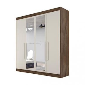 Guarda Roupa Solteiro Com Espelho 4 Portas 3 Gavetas - Nantes-braúna/off White - Móveis Europa