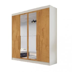 Guarda Roupa Solteiro com Espelho 4 Portas 3 Gavetas-Off White/Peroba - Nantes - Móveis Europa