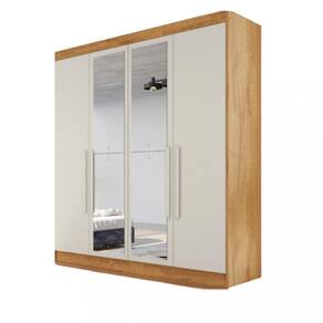 Guarda Roupa Solteiro com Espelho 4 Portas 3 Gavetas - Nantes-Peroba/Off White - Móveis Europa