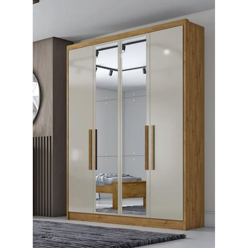 Guarda Roupa Solteiro com Espelho 4 Portas 3 Gavetas - Sevilha