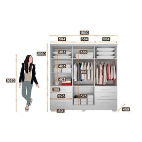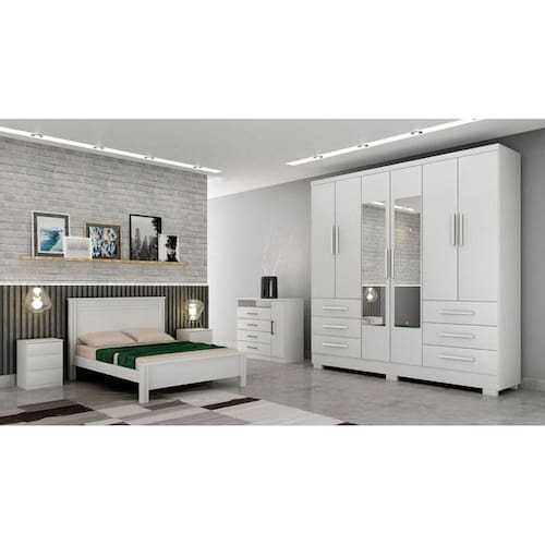 Guarda Roupa Solteiro com Espelho 6 Portas 6 Gavetas - Berlim-Branco - Móveis Novo Horizonte