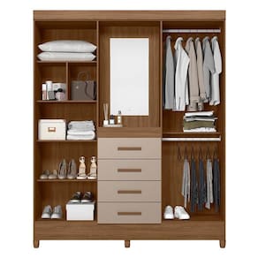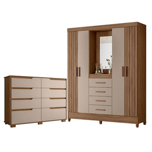 Guarda Roupa Solteiro com Espelho Atenas e Cômoda Georgia Carvalho Fendi – Moval