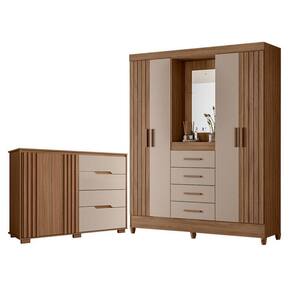 Guarda Roupa Solteiro com Espelho Atenas e Cômoda Texas Carvalho Fendi – Moval