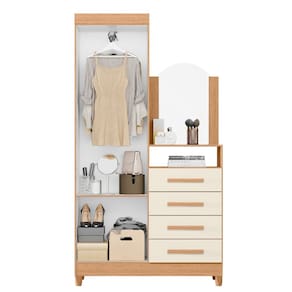 O Guarda Roupa Solteiro Flex com Espelho e Pés + Cômoda New Capri Albatroz um conjunto funcional e elegante, ideal para otimizar seu espaço. Produzido em MDP de 12 e 15mm, com fundo em HDF 3mm, oferece durabilidade e resistência. O guarda-roupa conta com nicho e prateleira que suportam até 4kg, além de espelho com topo curvo -60x39 cm-. A cômoda possui 2 portas, 4 gavetas com corrediças telescópicas e dobradiças metálicas, garantindo praticidade. Pés em PVC e puxadores de MDF revestidos complementam o design moderno. Gavetas suportam até 3kg cada.