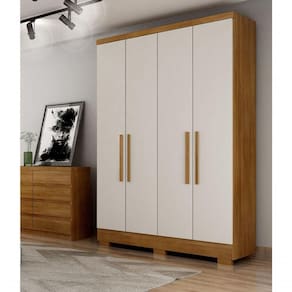 Guarda Roupa Solteiro com Pés 4 Portas 2 Gavetas - Veneza-Cumaru/Fendi - Móveis Novo Horizonte