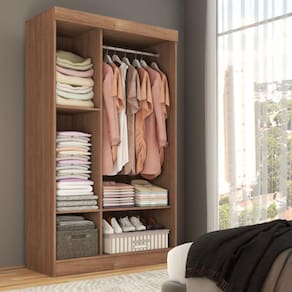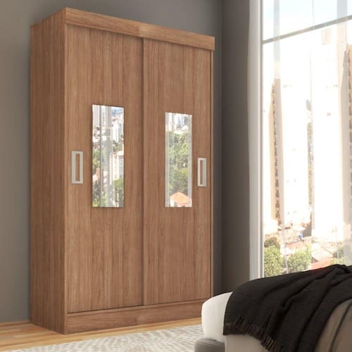 O(a) Guarda-Roupa Solteiro Cordoba 2 Portas com Espelho Cinamomo - Loja é produzido em MDP na escala de brilho Fosco, e possui um grau de dificuldade de montagem: Médio.