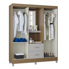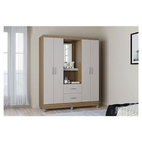 Guarda Roupa Solteiro Cordoba 4 Portas Castanho Off White - Poquema