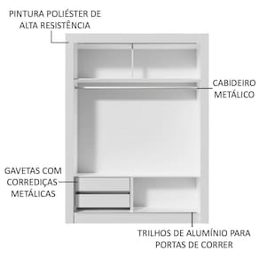 Pensado na medida certa para quarto de solteiro, possui acabamento interno e externo branco, feito em pintura poliéster de alta resistência que confere maior qualidade e durabilidade ao produto.