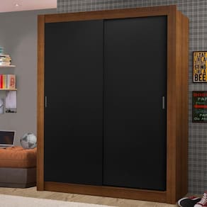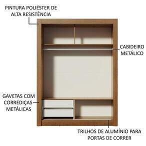 O Guarda-Roupa Dallas da Madesa conta com duas portas de correr de deslizamento suave, trilhos em alumínio, dobradiças metálicas e ferragens de qualidade que proporcionam melhor sustentação ao móvel.