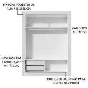 O Guarda-Roupa Dallas da Madesa conta com duas portas de correr de deslizamento suave, trilhos em alumínio, dobradiças metálicas e ferragens de qualidade que proporcionam melhor sustentação ao móvel.