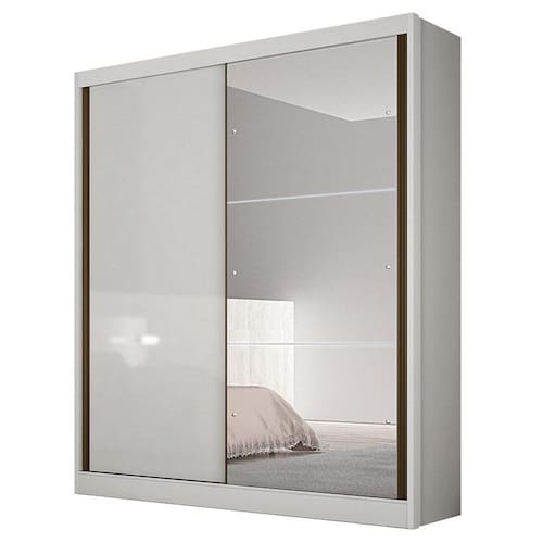 Guarda Roupa Solteiro Dante 2 Portas Neve com Espelho – Novo Horizonte
