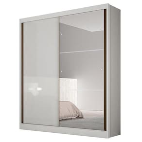 Guarda Roupa Solteiro Dante 2 Portas Neve com Espelho Novo Horizonte