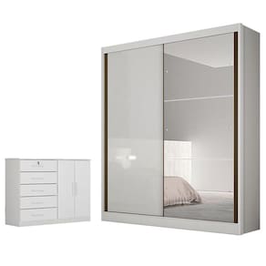 Guarda Roupa Solteiro Dante com Nicho e Espelho e Cômoda Seul Neve - Novo Horizonte
