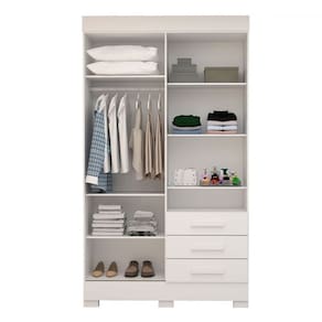 - Acompanha: 1 Guarda-Roupa, Kit Ferragens e Manual de Montagem