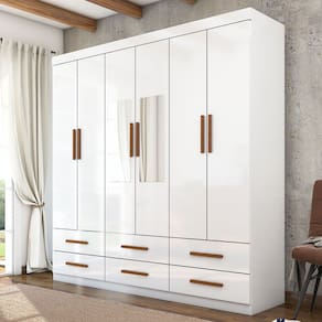 O(a) Guarda-Roupa Solteiro Denver 6 Portas 6 Gavetas com Espelho Branco - Carioca Móveis é produzido em MDP na escala de brilho Fosco e Semi-Brilho, e possui um grau de dificuldade de montagem: Médio.