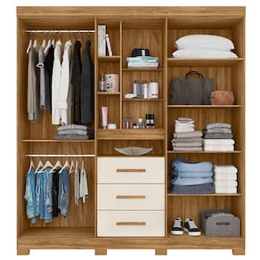 Guarda Roupa Solteiro Eldorado 5 Portas Freijó Off White com Espelho - Moval